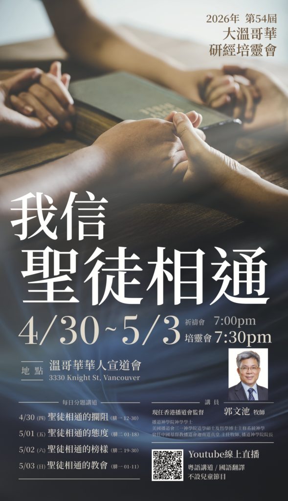 地點:溫哥華華人宣道會 (3330 Knight St, Vancouver, BC)